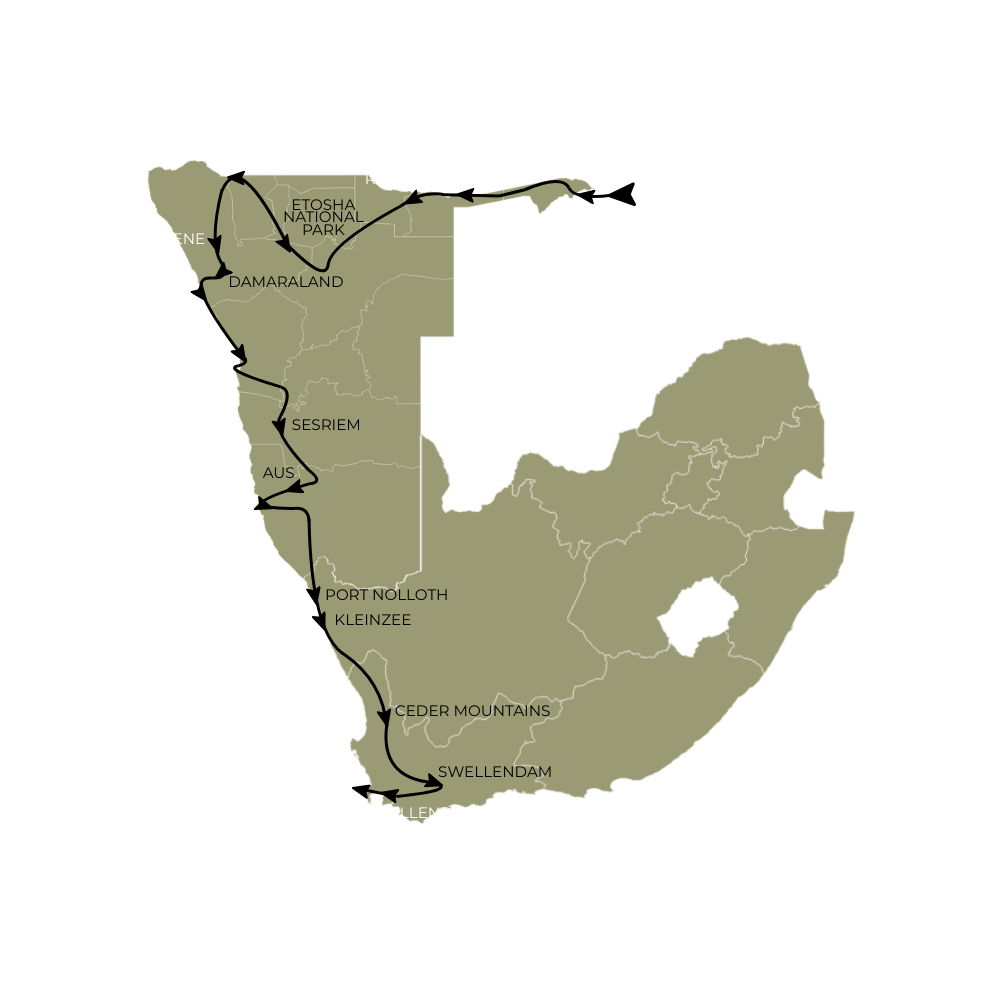 Chase Namibia’s most iconic light on this 11-night self-drive photography journey — from the red dunes of Sossusvlei to the wild Atlantic coast at Swakopmund and Cape Cross, through the dramatic Erongo and Damaraland landscapes to Etosha’s wildlife-rich plains. Designed for first-time visitors seeking variety at a relaxed pace, this route delivers desert textures, coastal moods, and unforgettable wildlife moments in one seamless adventure